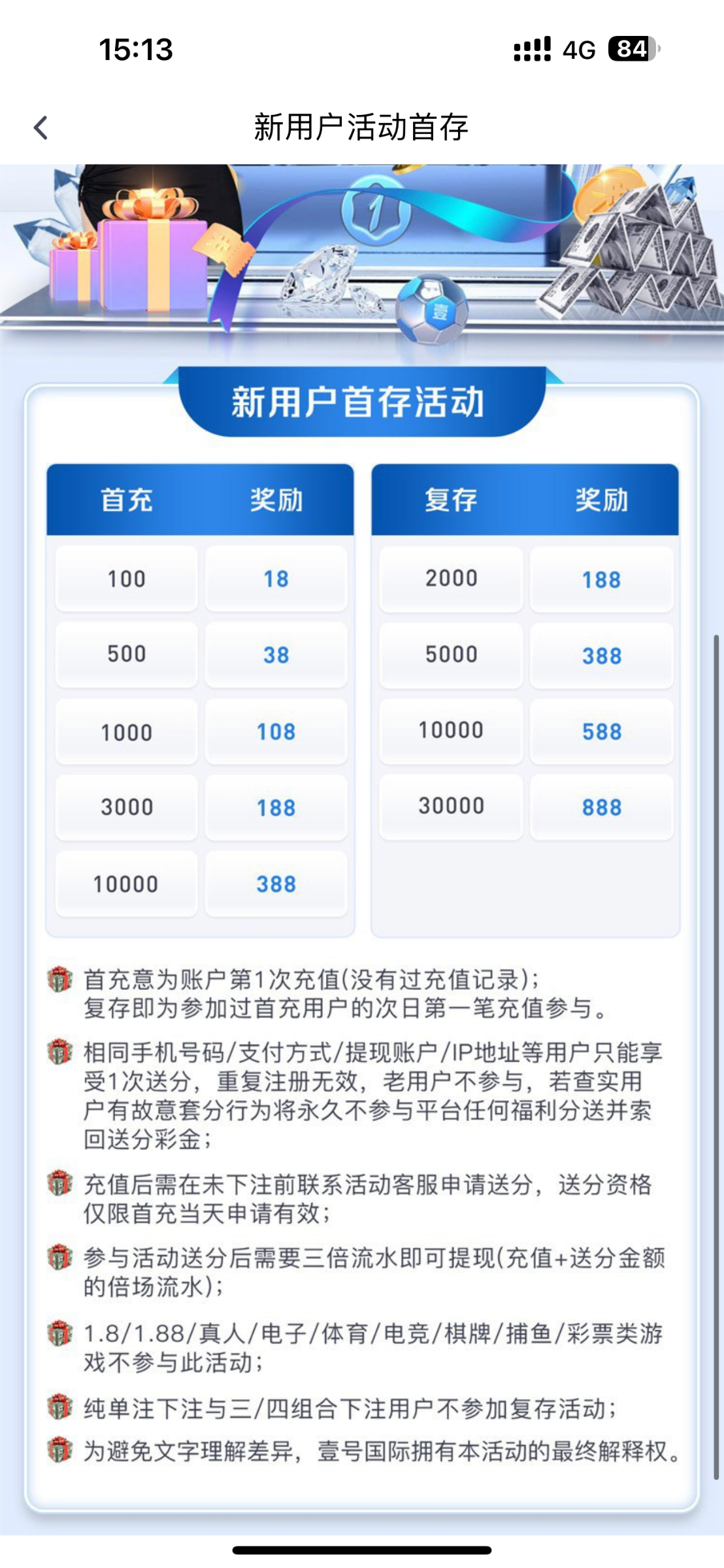 昨天抽中扶持88,今天存100申请首存却不送,这是什么逻辑