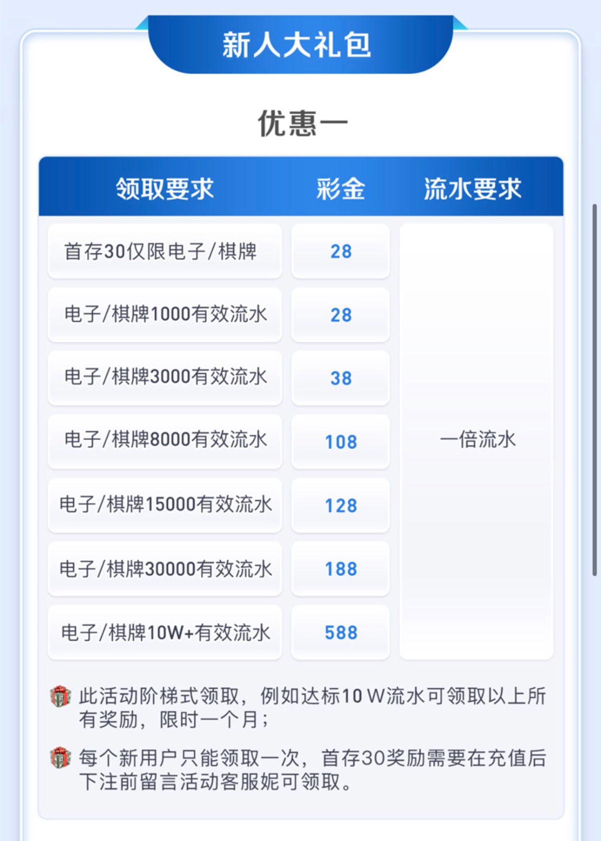 2.新人大礼包活动/棋牌电子(最高奖励1588元)