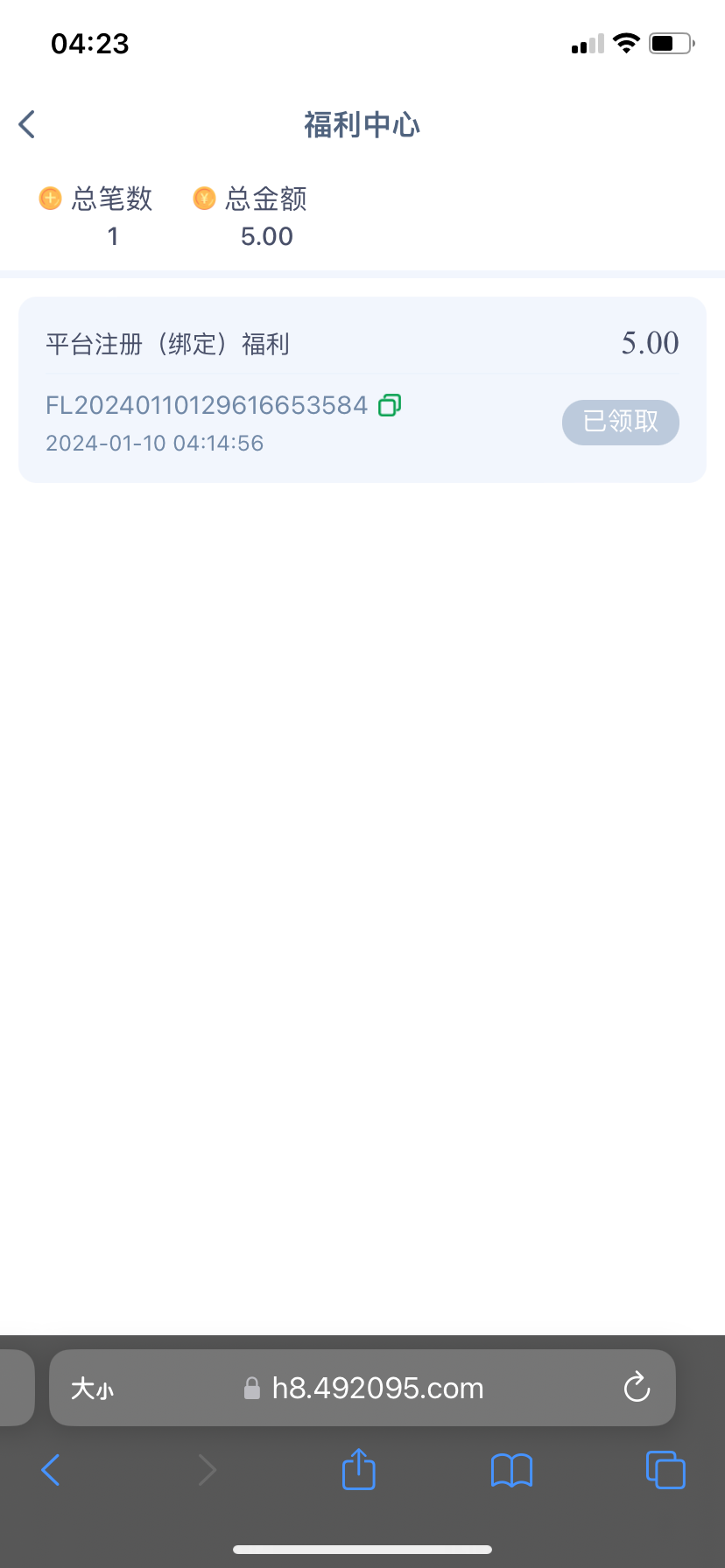 之前发过,今天亲测能领,领取了26  客服说随机的, 要下载后再去注册,在福利中心直接领取 ,出款未知,我没打出来,禁止充值