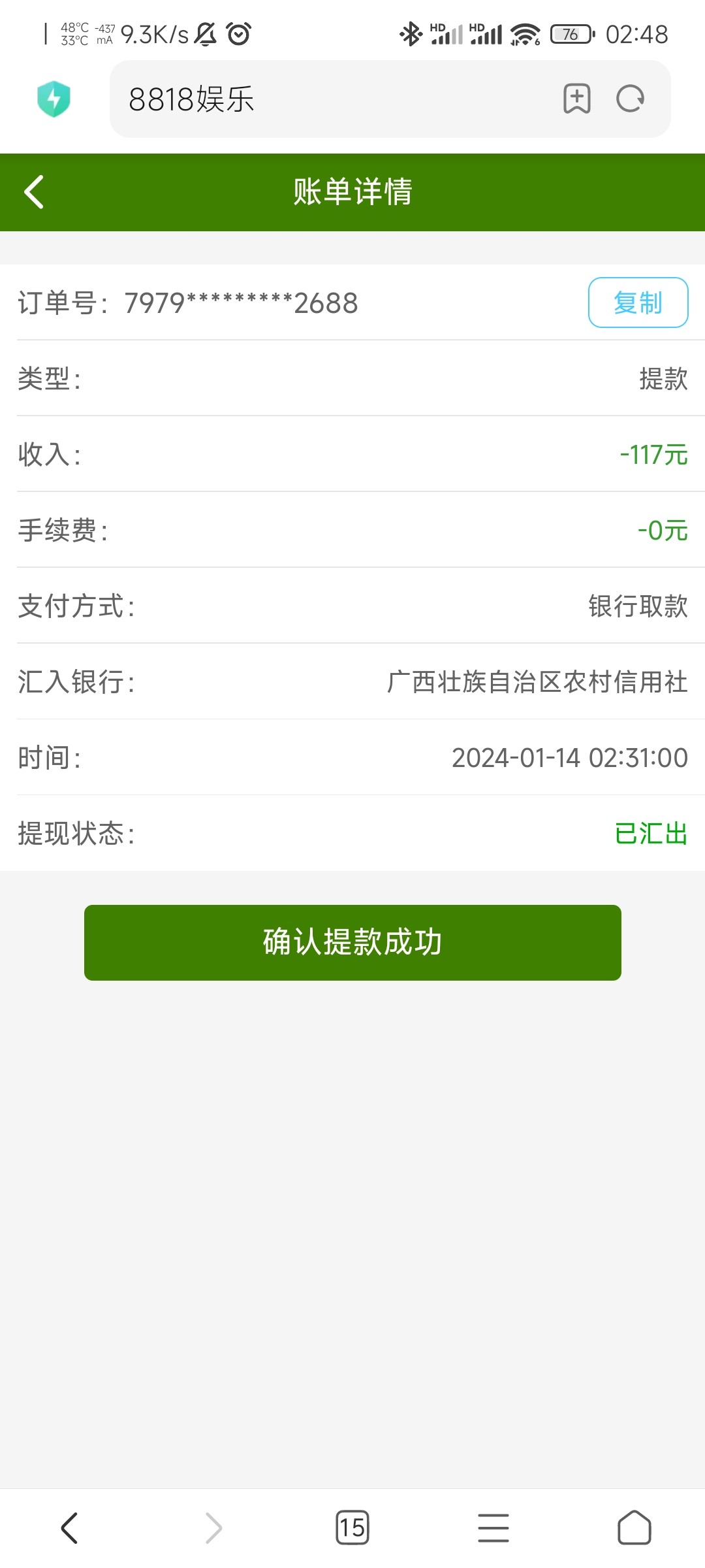 qoq611 8818注册送了38 提了140 到账
