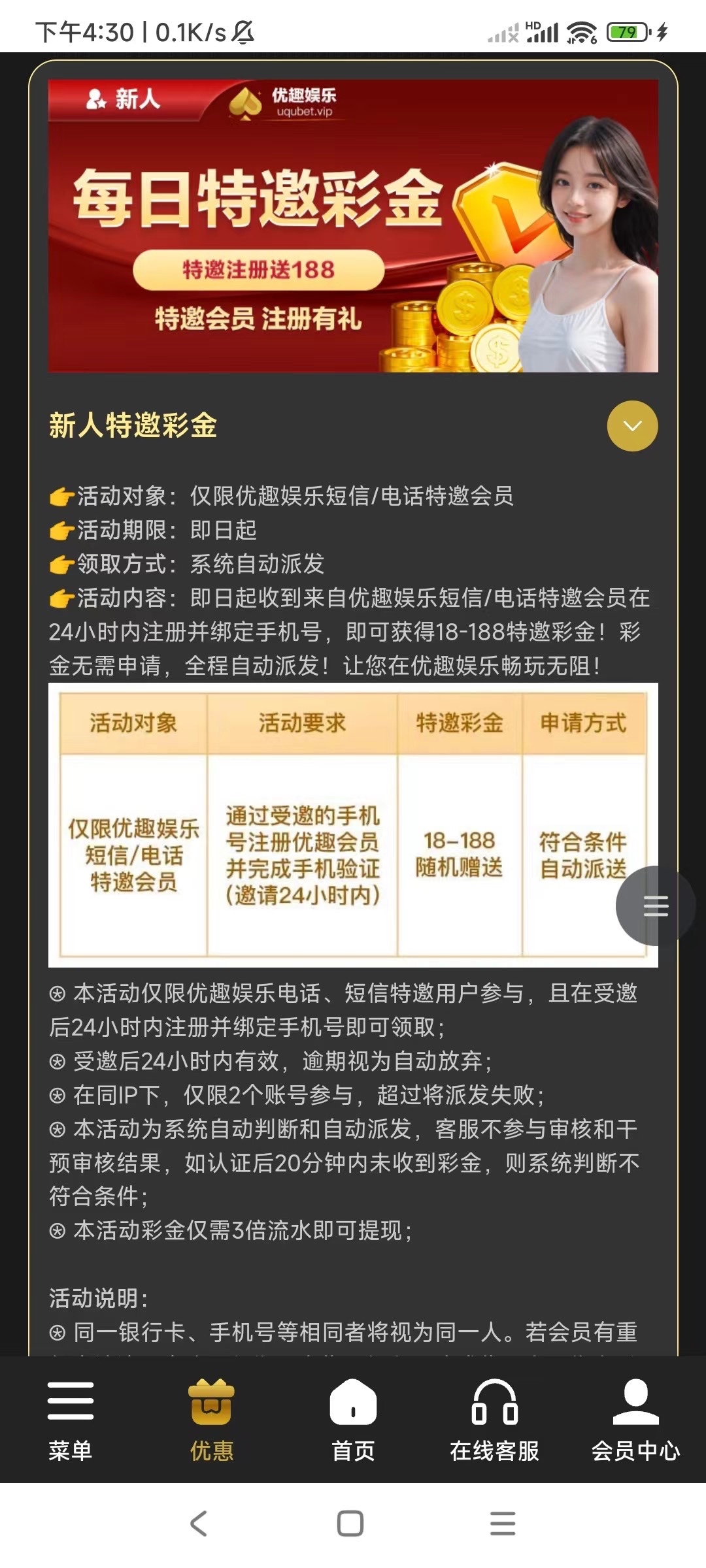 新用户手机号注册并完成手机号验证两小时内自动送18-188。特邀碰瓷勿充值。