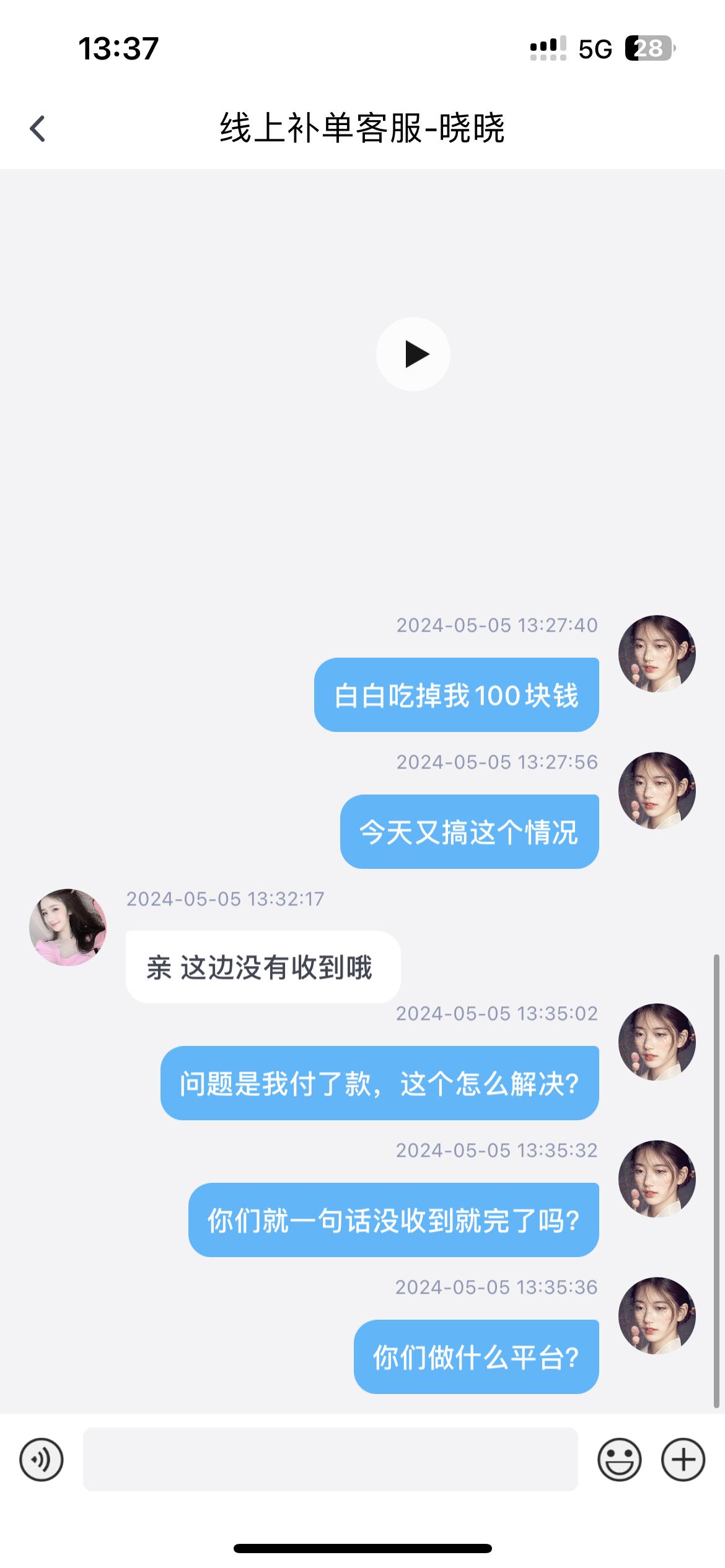 客服不回消息,100能送嘛