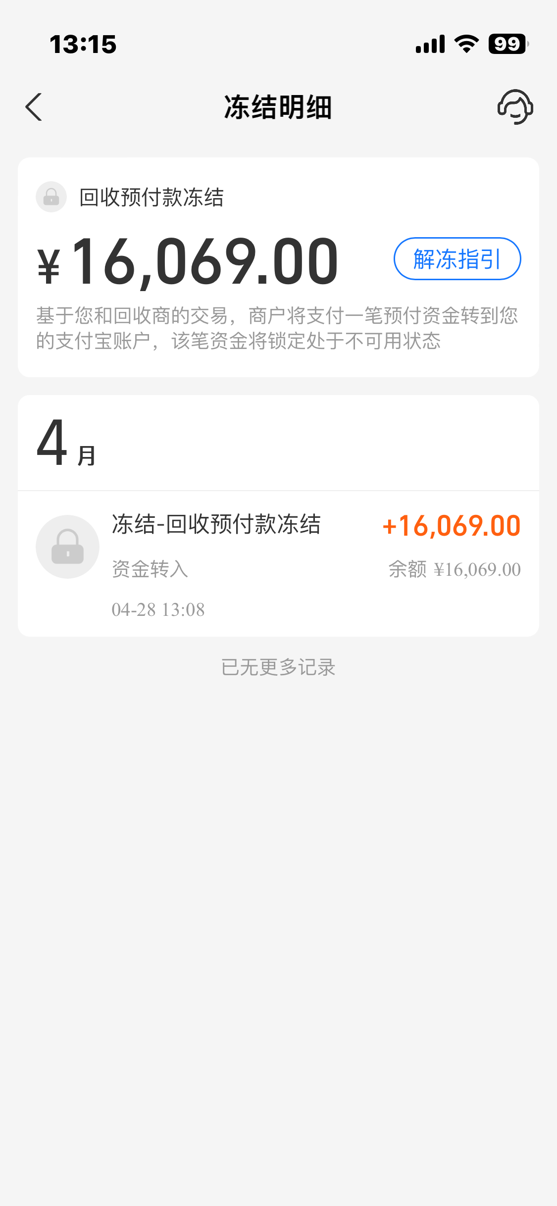 有毛用啊,要顺丰上门取件才解冻余额。