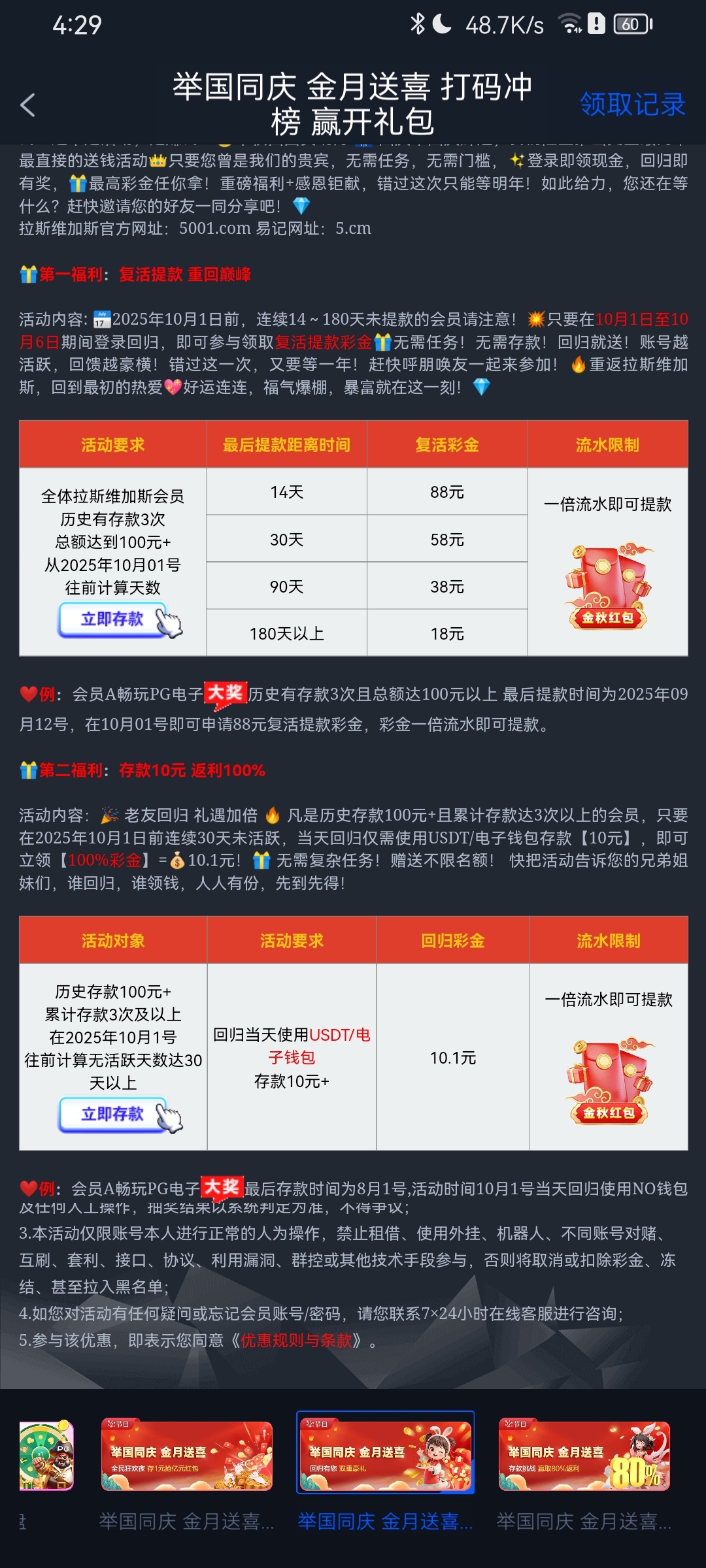 充值过的最少18彩金 我两个号都有申请次数 国庆节当天申请