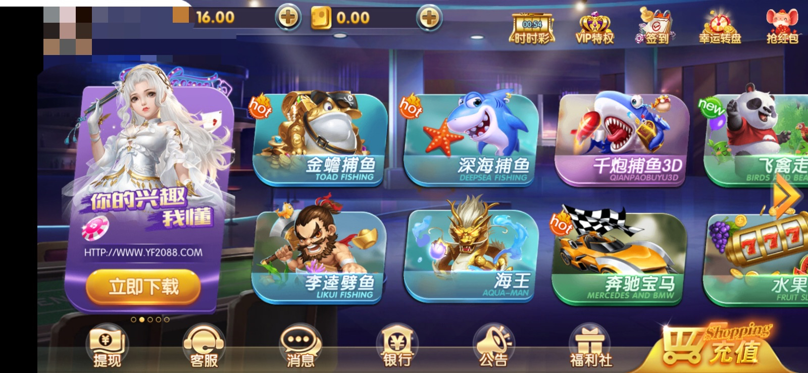 亲测秒送16,无游戏限制可以玩那个金蟾捕鱼打到15 再去玩那个深海捕鱼可以开0.1