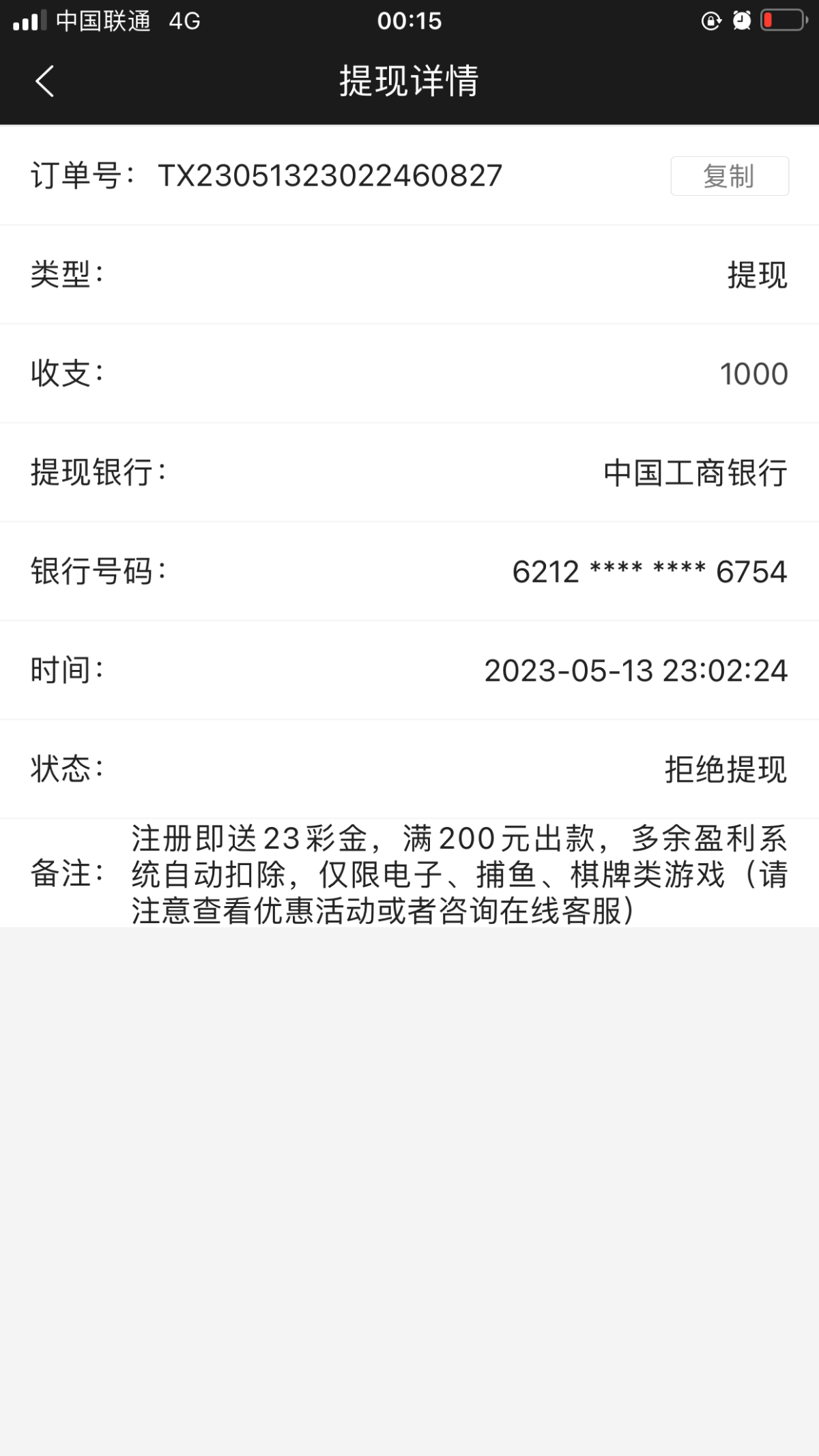 没几把格局的烂台  提现显示到账了  睡一觉起来了十几个小时了都没到银行卡  直接打空款  垃圾台子