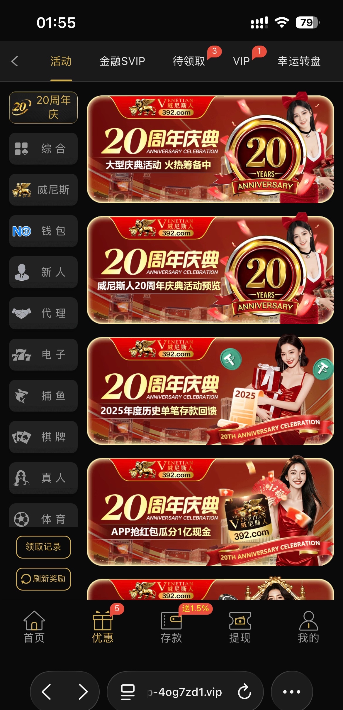 【威尼斯392-周年庆回馈】