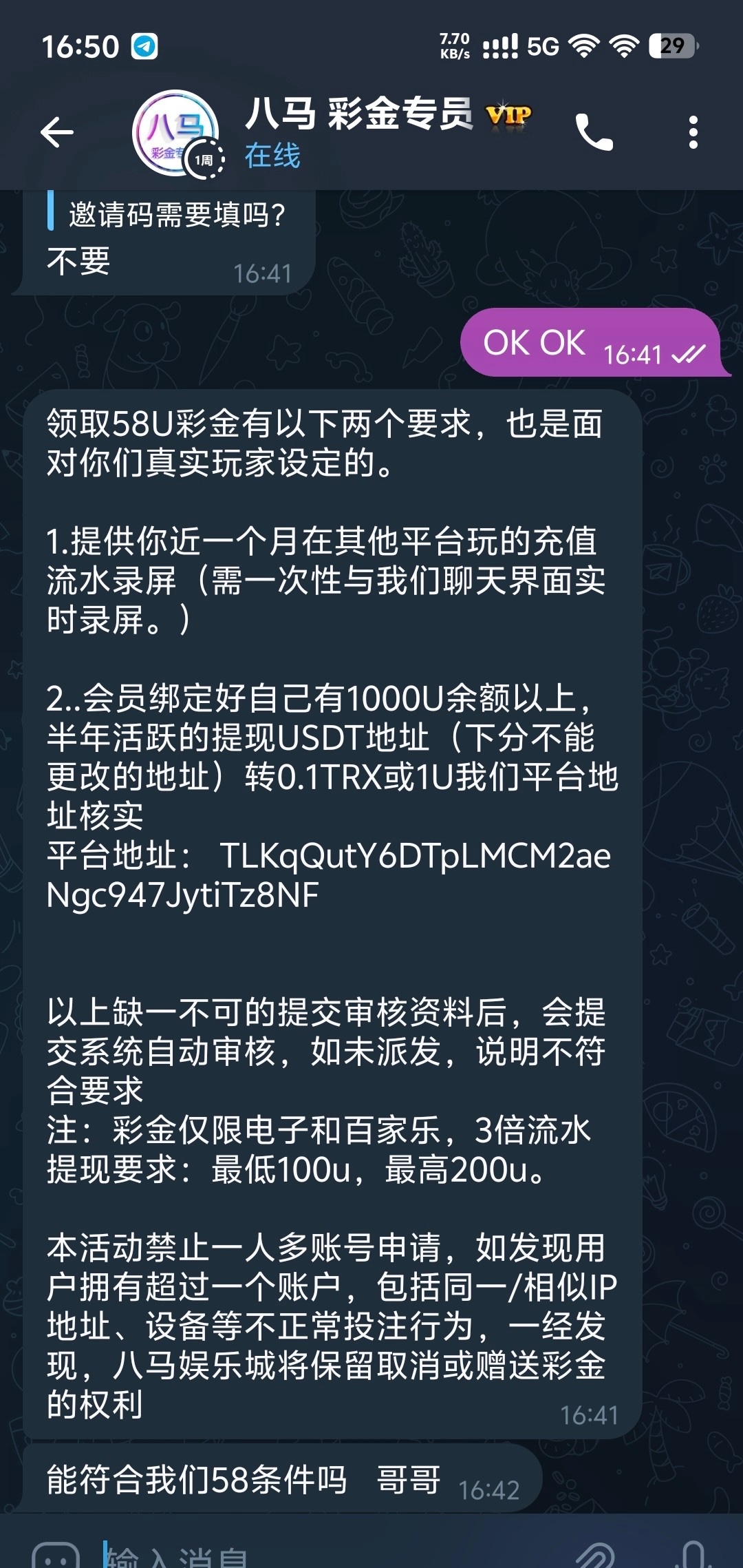注册送5u联系@bmvip666 有一个提供流水跟US TD活跃这个需要这些我不够你们谁行谁上吧我没打出来