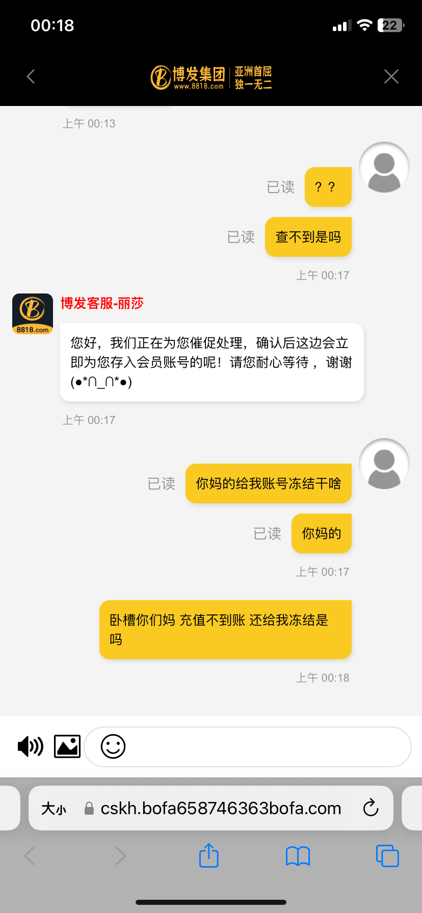 傻逼8818博发 充值不到账 还给我冻结