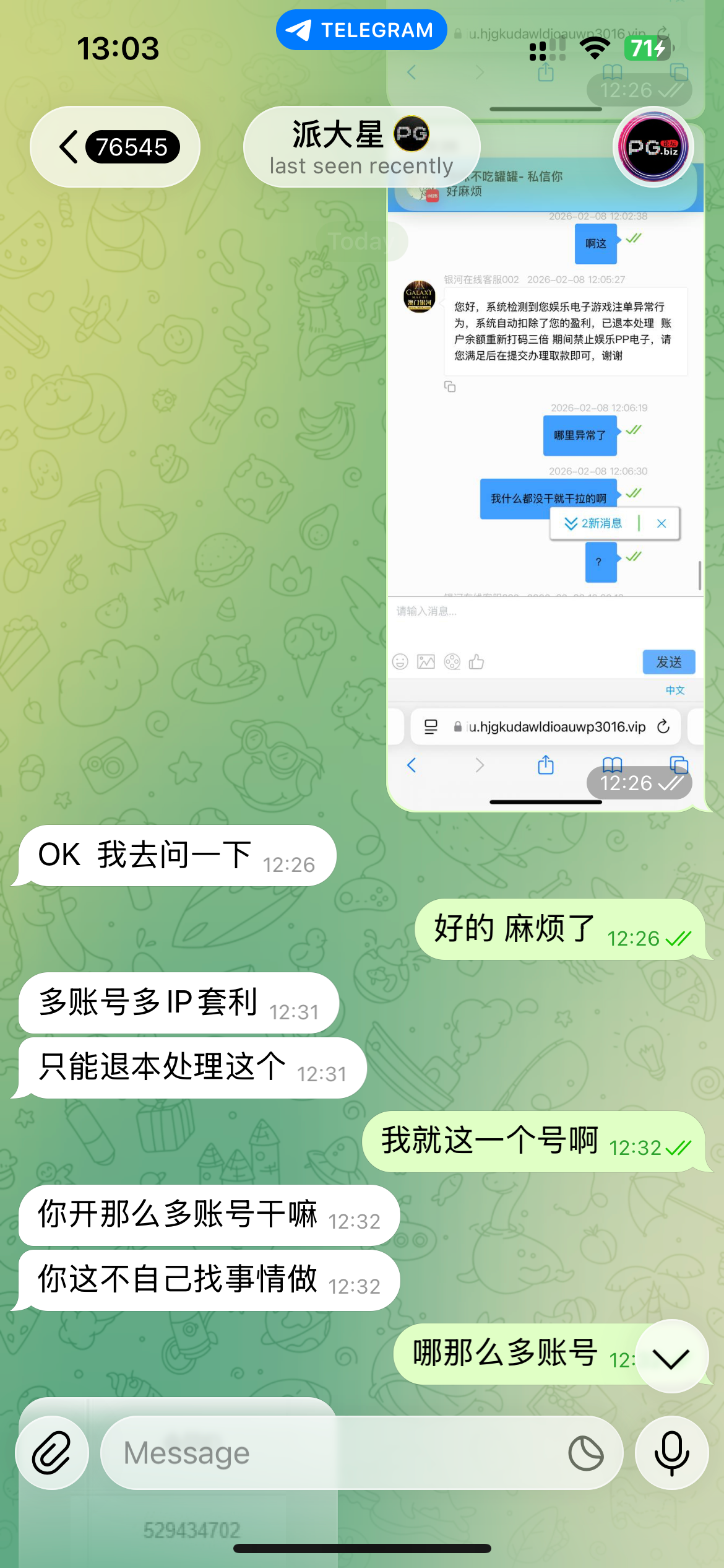 本来打算玩这个台子的pg以大博小 充值后发现要当天存200才能参加 就去拉pp电子 爆分后不给提款 直接扣除