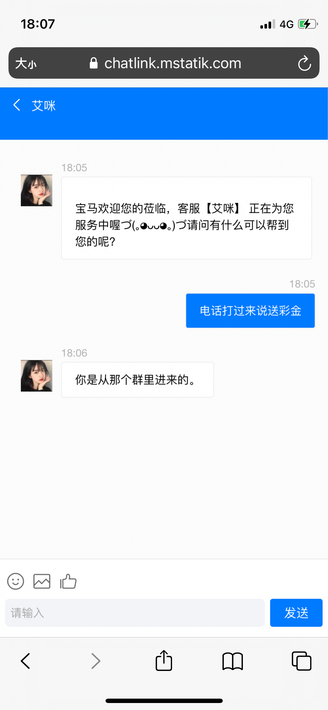 我笑了,看我跟客服说得,直接给她发手机号啊