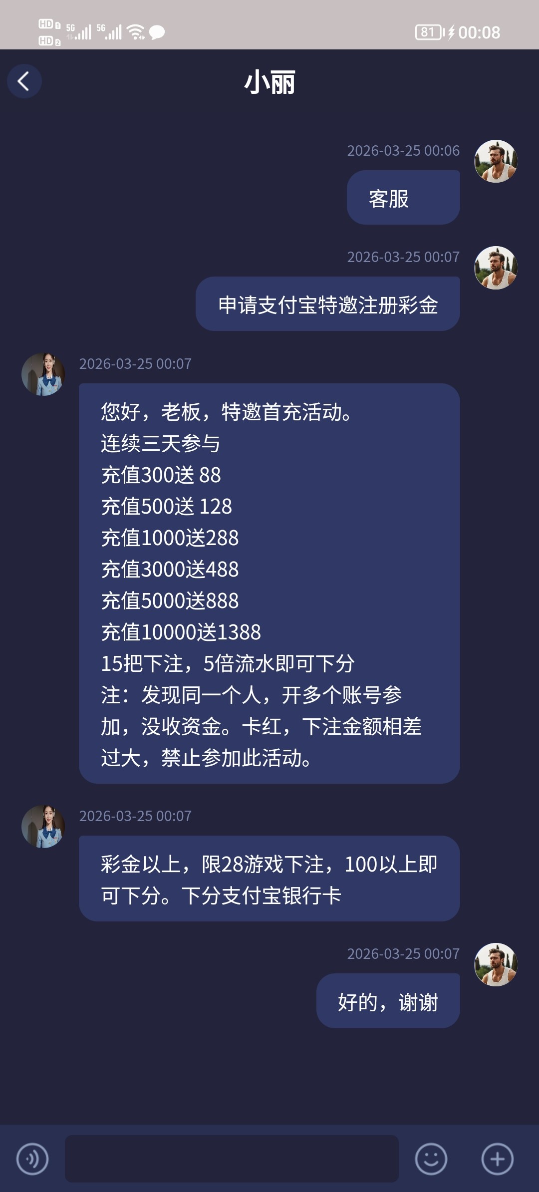 支付宝收到的特邀,注册了实名找在线客服申请支付宝特邀彩金就行,什么都不查直接送68满一百就可以提现,我打挂了你们去试试切记勿充值白嫖就行,网址xh12.vip