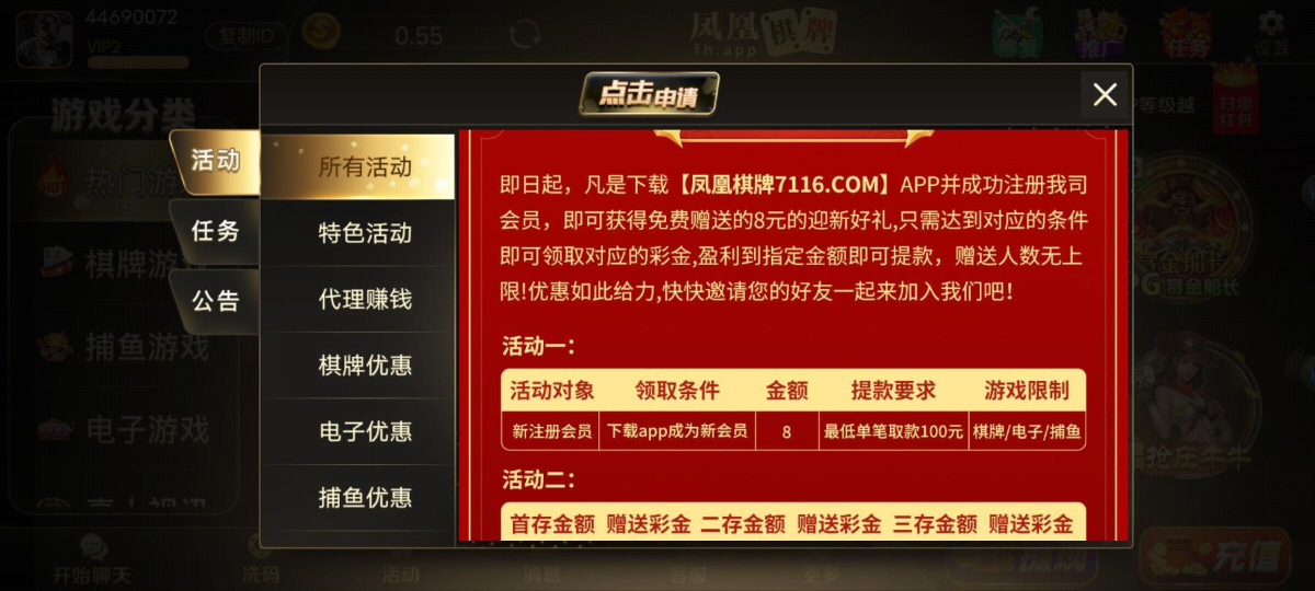 凤凰棋牌送8