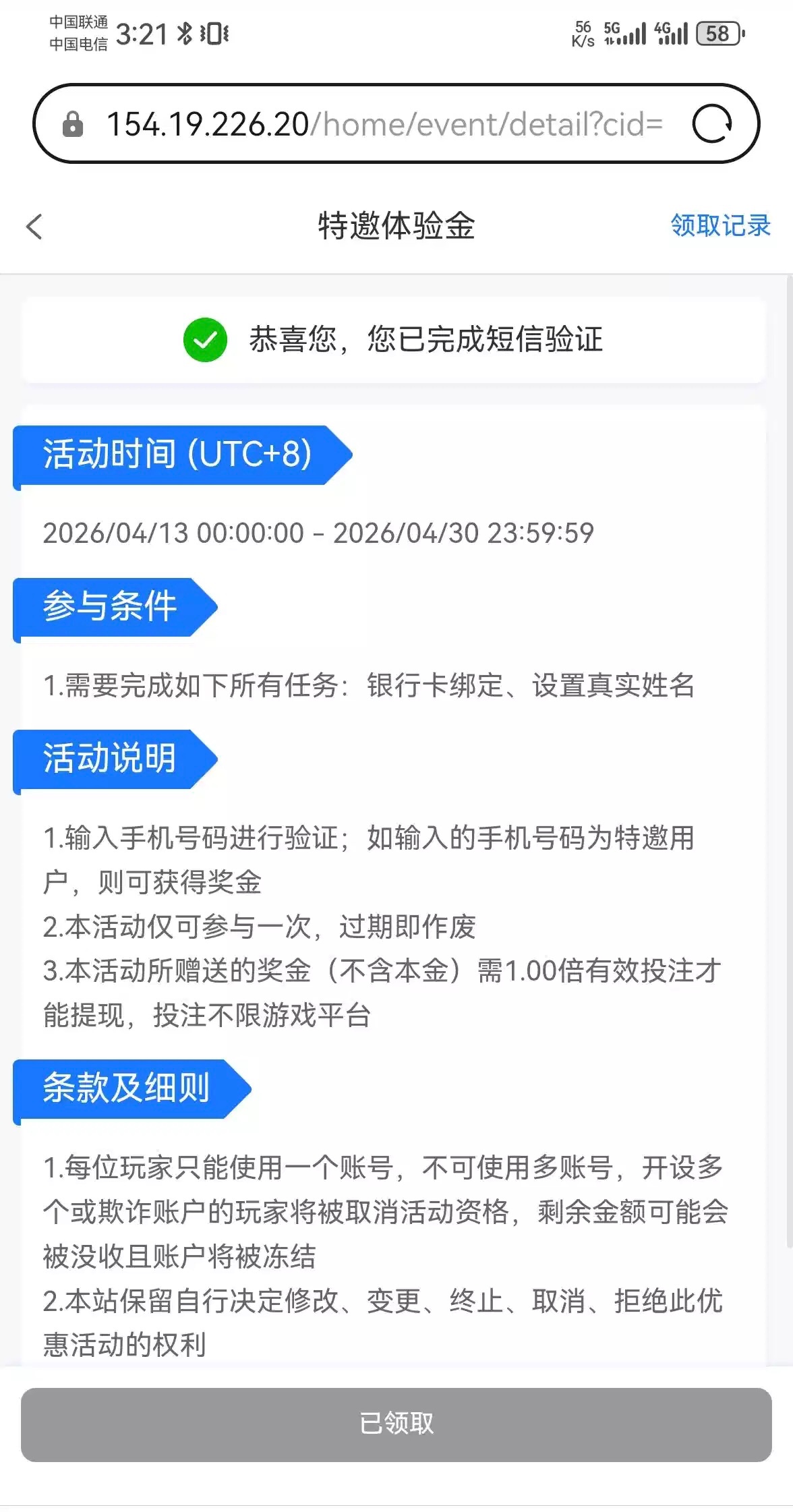 手机绑定过早,提示活动开始前绑定的