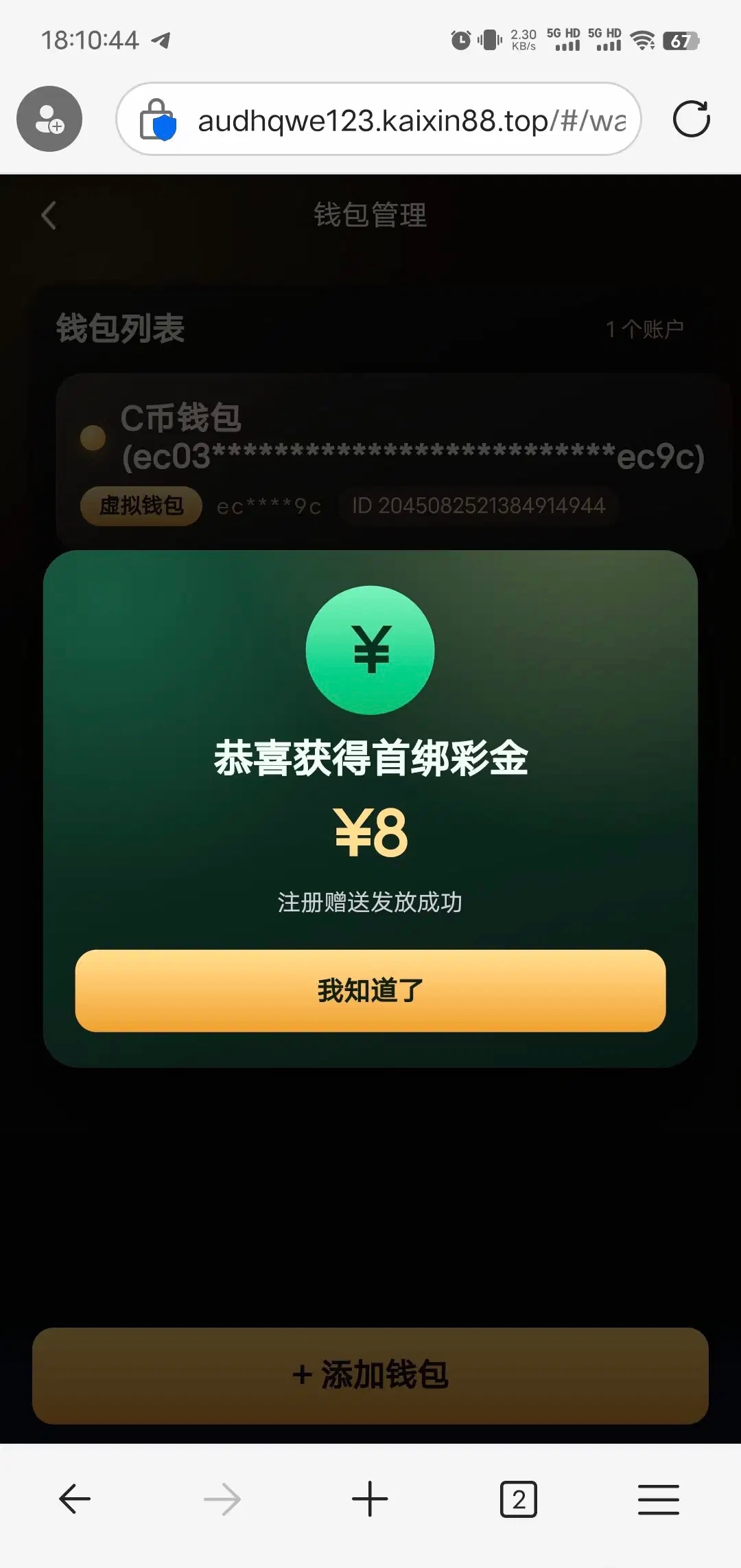 xingzuan.vip 注册绑定钱包送8,提现自测