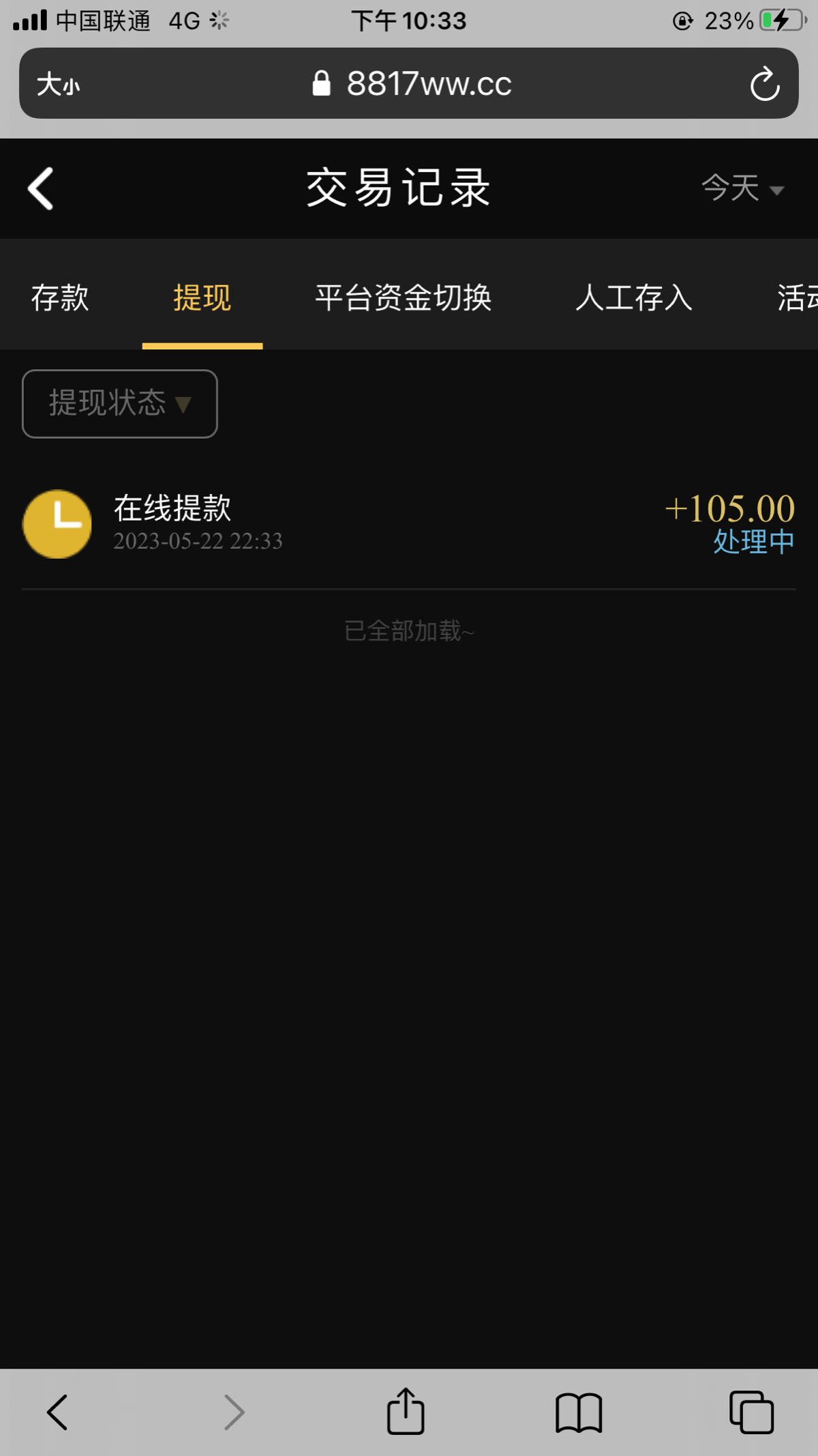 我的和你的一样,别想了,到不了。这个平台就是个黑平台。