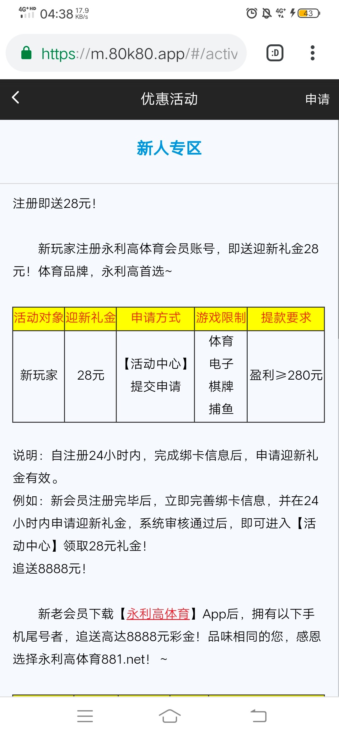注册下载之后申请18下载彩金和28新人彩金